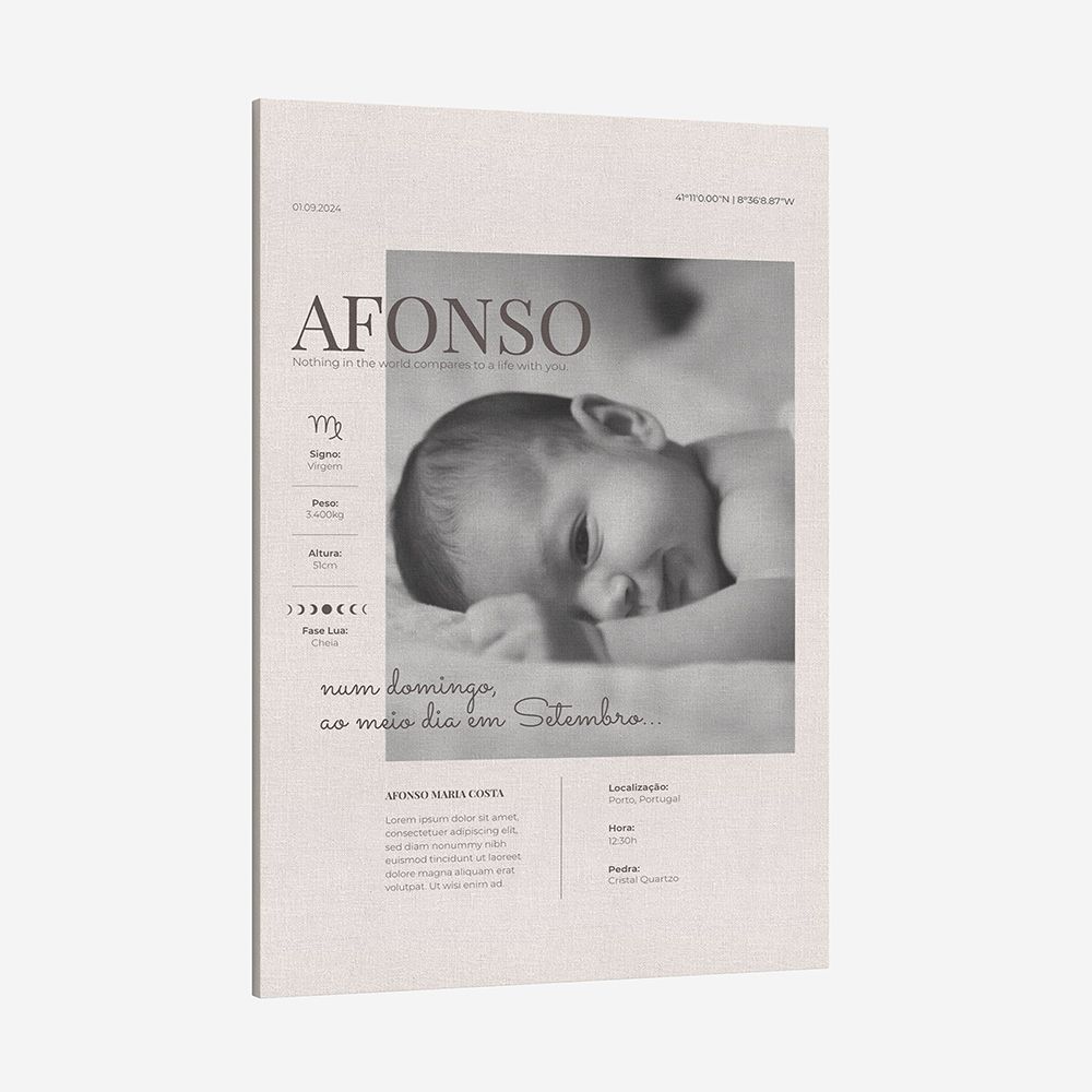 Impressa em tela de algodão com alta definição, garantindo uma nitidez impecável. Disponível com bastidores de 2 cm de profundidade, envoltos numa estrutura de madeira de alta qualidade para maior durabilidade.